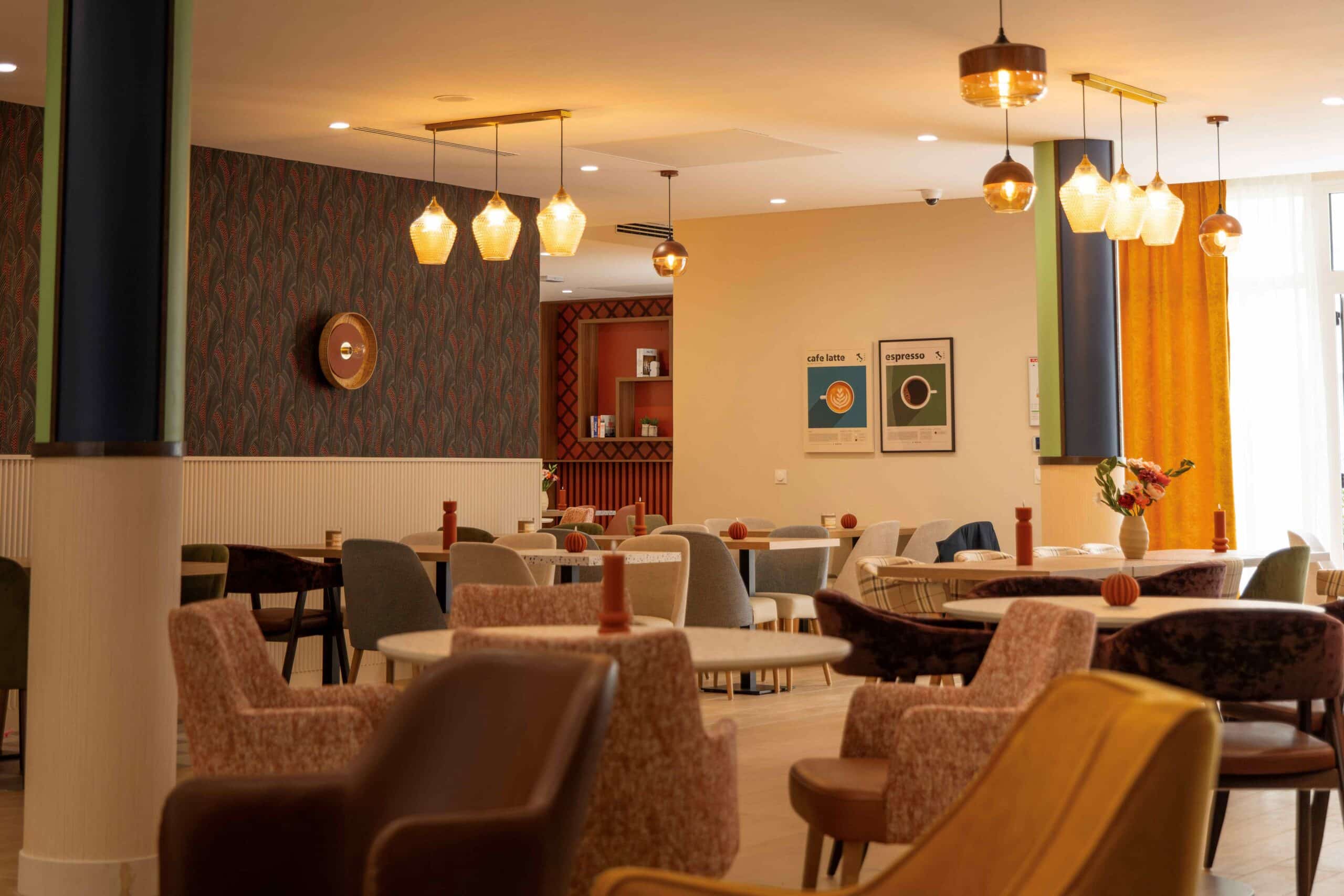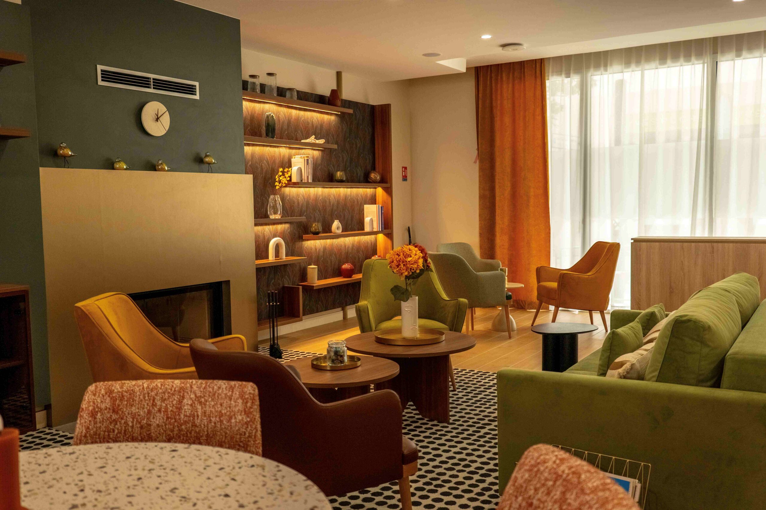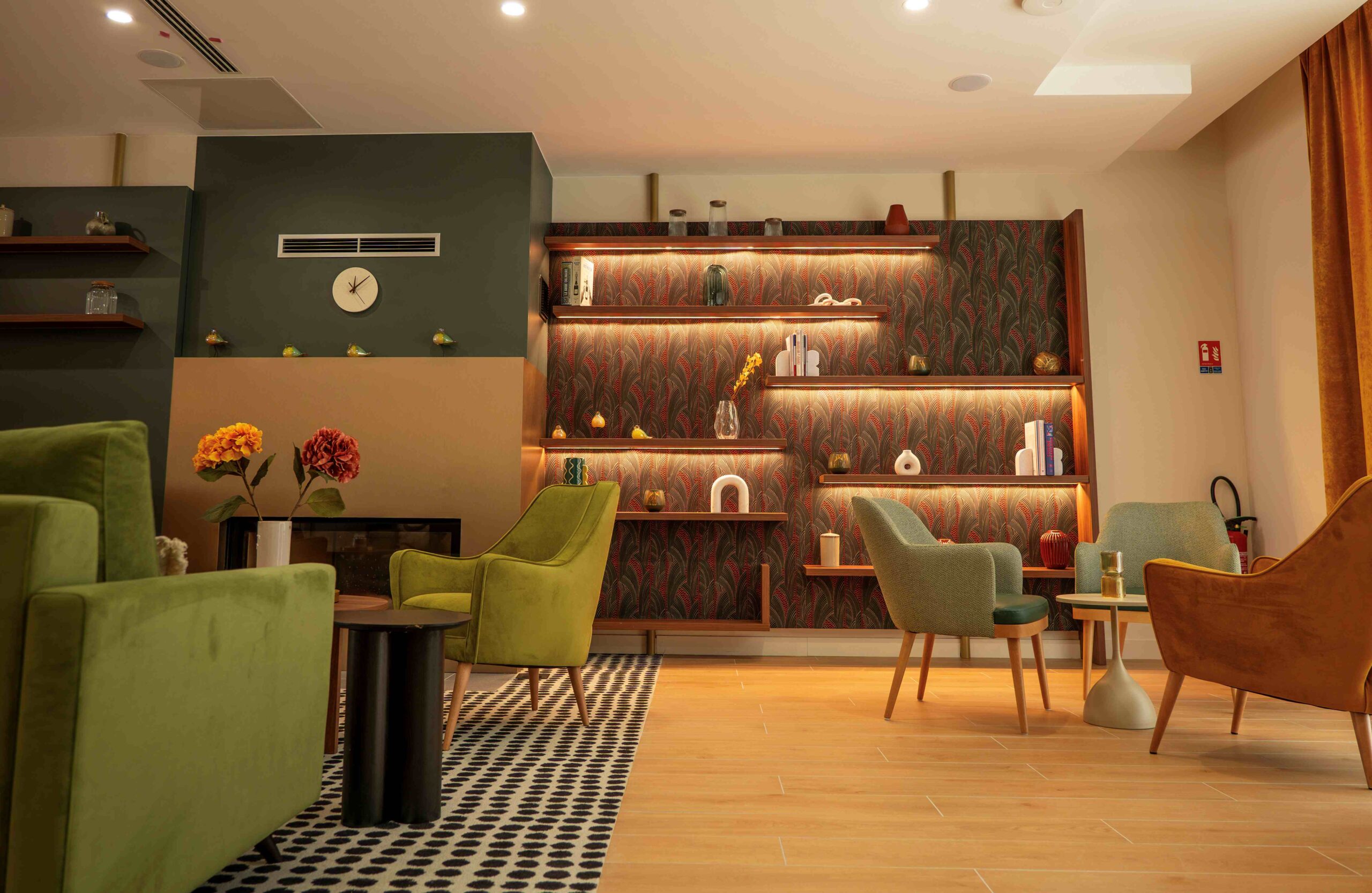 La résidence Nohée Vichy s’apparente à une vaste maison familiale à la décoration particulièrement chaleureuse et soignée. Une partie de cartes depuis les confortables canapés du salon cossu, un atelier lecture devant un feu qui crépite dans la cheminée de la bibliothèque… Ici, les résidents peuvent vivre pleinement leur quotidien entre eux ou recevoir leurs proches dans des espaces partagés aussi conviviaux que raffinés. C’est dans un véritable souci du détail, que chaque pièce du mobilier sobre et contemporain a été sélectionnée pour s’harmoniser au mieux avec les teintes douces et pastel, qui dominent en ces lieux, si propices à la sérénité.